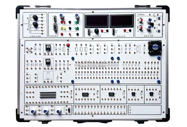 实验箱由全铝合金箱体、高性能线性电源和实验电路板组成。其中实验电路既可以采用固定功能模块方式,模拟电路实验仪也可以自行搭建实验电路,电路原理和元器件符号清晰,实验用元器件全部焊装在线路板的反面,安全可靠,不易损坏。模拟电路实验箱适用于本专院校所有电类和非电类专业《模拟电子技术》、《电子线路》等课程的实验教学。