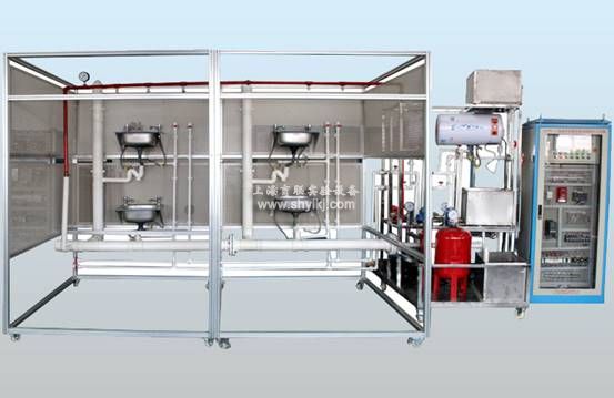 1、不锈钢水盘,冷、热两用水龙头,模拟两层建筑、网孔式房间、4个住户用水终端