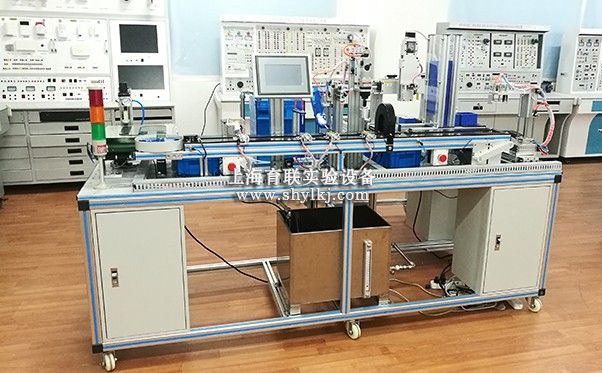 柔性生产线实训设备,柔性生产实验平台系统包含了机电一体化专业中的气动、电机驱动与控制、PLC、变频器、触摸屏、传感器等多种控制技术,适合相关专业学生进行工程实践、课程设计及初上岗位的工程技术人员进行培训。