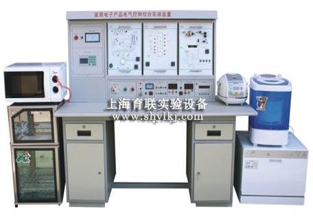 实训挂件由电子电风扇、微电脑控制电饭锅、微波炉、电子消毒柜、全自动洗碗机、全自动洗衣机等组成。挂件均可设置故障点、完成排除故障等实训内容。