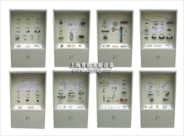 气动液压示教陈列柜是为了满足大、中院校的教学需要,根据相关教材编制设计的现代教学设备,其中主要以实物或模型以及必要的图文资料展示气缸,控制阀,液压泵,马达,控制阀等相关元件的基本类型与基本结构。