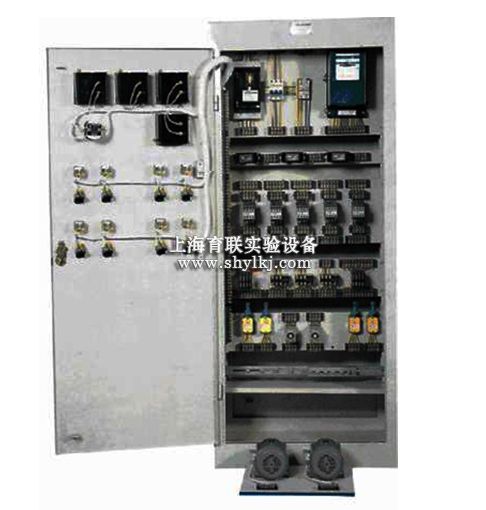 该装置按标准电气控制柜设计制造规格,充分利用双面位置,柜内装有完成各种照明电路所需的单相电度表、日光灯、单联开关、插座、感应开关、漏电开关等,以及电气控制所需要的多种低压电器,如漏电断路器、熔断器、电流互感器、交流接触器、时间继电器、热继电器、中间继电器、行程开关、按钮、信号灯、转换开关、电压表、电流表、功率表及电度表等,为了延长电器使用寿命,各电器的接点都与接线端子相连,再由接线端子与被控制电气连接。