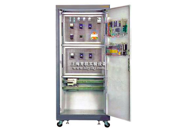 两面柜体的立柱上都分别装有两块网孔板和两根元器件标准安装导轨,实训元气件可以随意安装到网孔板的任何位置,并配有走线槽控制柜还设有四个万向轮和四个固定调节机构,便于移动和固定,有利于实训室的布局。