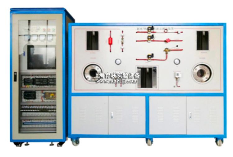 制冷/热泵循环演示测量装置由操作台主要由:制冷系统、温度测试、流量测量系统、电流电压检测、加热系统、温度控制系统、电子控制系统、软件控制、动画学演示等组成。设备配置三套制冷系统工:一套冷水机、一套板式换热制冷系统和一套带视窗功能蒸发器/冷凝器的制冷系统。