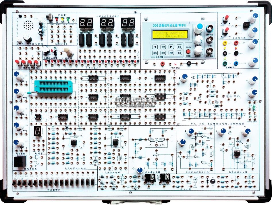 15、模拟电路实验模块:(1)单级、多级、负反馈放大电路、射极跟随器实验电路;(2)集成运算放大器电路;(3)差动放大电路;(4)互补对称功率放大器;(5)集成功率放大器。